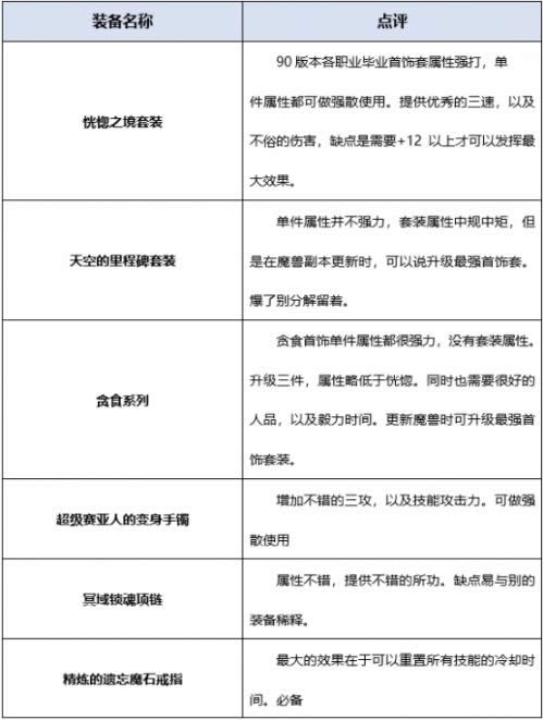 5、等级装备推荐