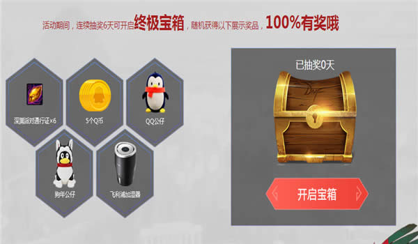 活动期间,每天在线30分钟以上可以开启一次宝箱,可随机获得以下展示礼品,连续抽奖6天可以开启终极宝箱