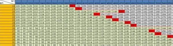 这表我只取了3000-5500智这么个区间,超过这区间的自行按上面的公式代入计算