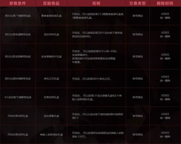 * 每解开一个活动地下城的全部谜题,都可以获得对应的解密奖励,每种奖励每个帐号只能获得1次