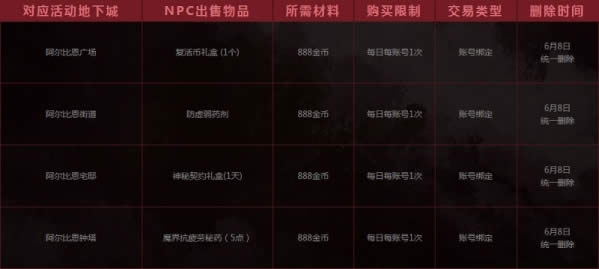 - 与该活动地下城对应的NPC会开放活动商店,可以在商店中购买每日奖励