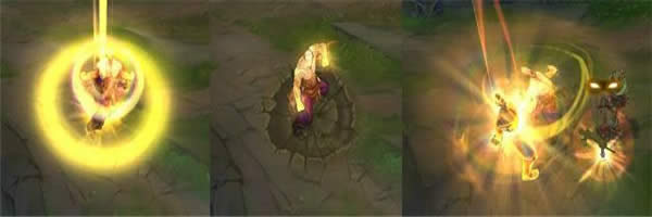 李青一直渴求着一场能让他飞升的挑战。不过,迄今为止他的寻觅并没有什么成果,也许身为召唤师的你能满足他。这款皮肤中,李青“天眼开”,颇有一些得道飞升的感觉。这套皮肤被玩家亲切的称为“睁眼瞎”,不过特效看起来还是蛮帅的,下面为大家分别展示。