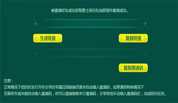 被邀请好友成功获取勇士回归礼包即视作邀请成功。