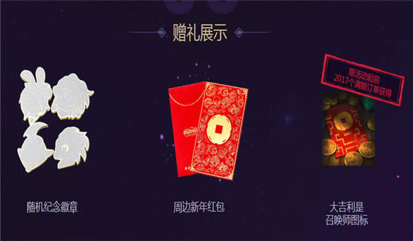 5道具说明:满额活动订单前2017个将在支付订单成功页面提示获赠“大吉利是 召唤师图标”道具,请玩家关注并且在该页面指引中填写完善游戏账号资料,以保证顺利收到道具。超出时间未填写则无法获得,如遗漏登记地址可联系商城客服咨询填写完成。