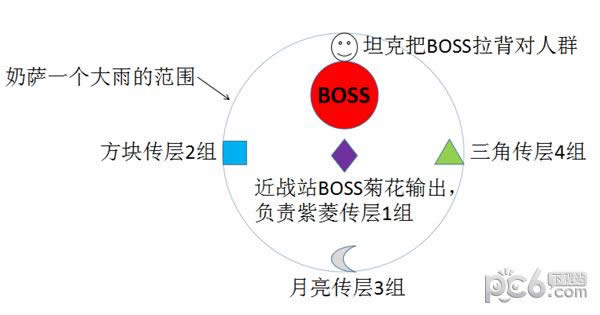 当有人的层数大于等于6层时,每次P1 BOSS的AOE,需要出人群5码分散,避免给其他人叠层