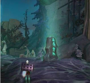 接下细说下玩家如何使用莫特格洛卷轴。玩家在祭坛四周有一些高亮的石碑,不用说就这是玩家互动的目标。玩家可以看到石碑上有一些符文,右键点击,就会读条使用卷轴激活这块石碑。