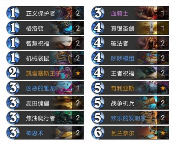根据大家的建议将救赎替换了113机械,另外我觉得3费曲线太低,需要一点占场,将一张智慧祝福换成334