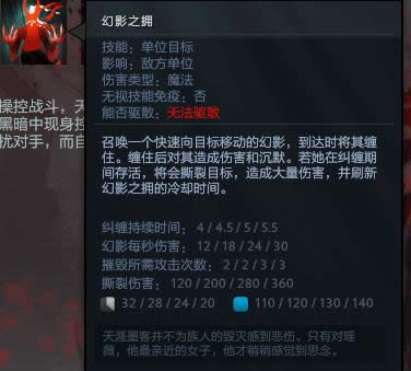 被这个技能命中敌人会被沉默不能使用技能,并且受到幻影的持续攻击伤害,并且在最终读条完毕后受到一个撕裂伤害!然后会刷新该技能的冷却时间!
