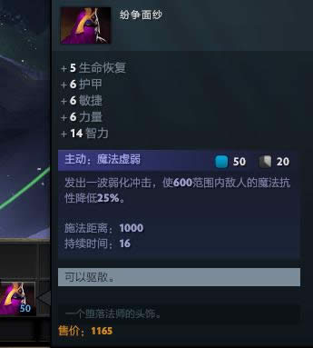 因为天涯墨客的技能全是魔法伤害,所以减少魔抗的纷争面纱是非常棒的输出提高道具!