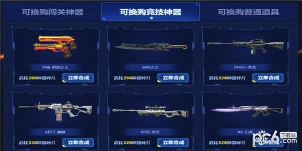 2.消耗神器碎片可直接兑换下列道具,当碎片不足时,可分解更多已拥有的武器,或直接在活动页面购买神器碎片。活动期间,每个用户默认可以进行2次神器合成(普通道具不消耗次数),在活动页面完成合成任务二,可获得额外合成次数。