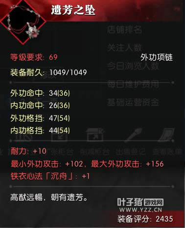 接下来,就是洗属性的过程了,69项链的技能属性是可以洗的,就像首饰的攻击一样,在+1到+2之间波动,而不是神秘词条爆出来的。这也就是为什么选胚子时候不要求要+2,因为就算是+2的,你洗完辣鸡词条,可能也会变成+1。而不建议染紫也是这个原因,就算拼着感人的概率生成了紫色,也有可能技能等级变回+1,这就很僵硬了,不如就用红色的,还能用不绑定的玄铁洗属性,美滋滋。如果重铸完出的是项链,基本10%左右概率是+2的,可以说是比较高了。但是在洗技能过程中,属性和大小攻击数值也会波动,并没有办法把技能+2稳住不变,所以可能需要较多次数才能让三者达到都完美的数值。关于洗属性的狗粮选择,建议选择60+的红色防具,只能含有以下几个属性:内外防御,内外会心抗(百分比会心抗不行),内外格挡,气血也行,但是含气血的基本比较贵,没意思,或者铁衣兄弟目标有耐力的可以选含耐力的。因为除了以上这几个属性,别的属性都可以洗到项链上。