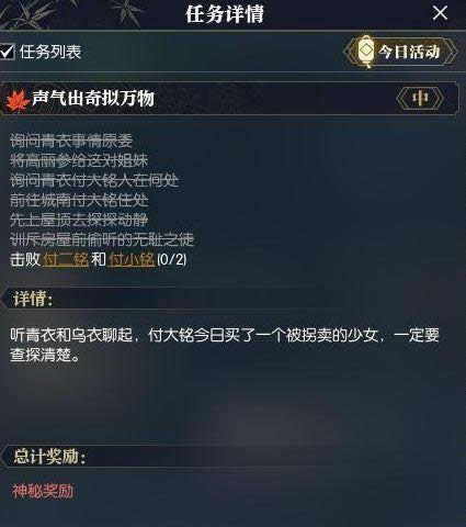 逆水寒中吉奇遇,声气出奇拟万物,很多玩家都不知道如何完成,声气出奇拟万物奇遇怎么触发?下面带来逆水寒声气出奇拟万物奇遇攻略,一起来看看吧。