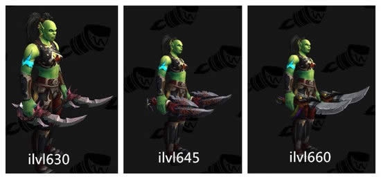 橙色追随者迦罗娜,除了可以看到她装等630的基础武器,还会发现她武器装等达到645和660,形态发生很大的变化。