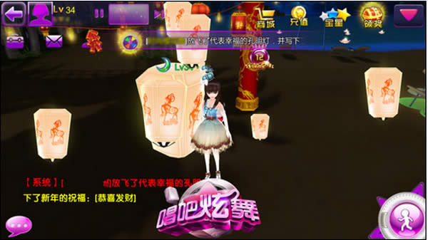 既然是新春贺岁版,自然少不了新春的元素!在新版《唱吧炫舞》的场景地图中,玩家们可以清楚的看到场景里多了很多传统的大红灯笼,上面的“福”字既喜庆又寓意吉祥,简直好彩头;挨着灯笼旁边有华表柱,上面的龙图腾寓意着几千年华夏文明的传承,极具民族特色,大红色也是看着就喜庆;晚上,水面上会出现很多的河灯,一盏盏星星点点,承载着彼此的祝福,还有新道具孔明灯上线,到时候点一盏给心爱的人表达爱意,那可是浪漫满满哟……