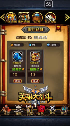 限时商场喜迎双12!亲爱的先生、女士还有女汉子,双11剁手节你们没赶上没关系,今天你们将再觅良机,《英雄大乱斗》限时商场、打折商场双喜临门,将会全部开启!神马金宝珠、金符文、金武器……通通1钻起,款款1钻起,一块钱你们买不了吃亏,一块钱你们也买不了上当,但一块钱你们能赚大便宜……