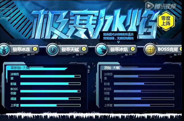 首先我们看到的是极寒冰焰和原版的极寒属性对比,这张图告诉我们的信息属性提高的不只是一点点哦,伤害、射速、boss伤、减速、上手度都有大幅度的提升。