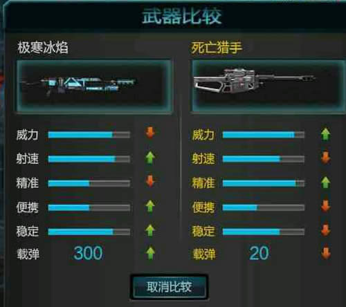 大家都知道玩猎场,你们有死亡猎手都不好意思进PVE,那么极寒对比死亡猎手的效果是除了威力和精准没有死亡猎手高,其他的属性均超过死亡猎手了。