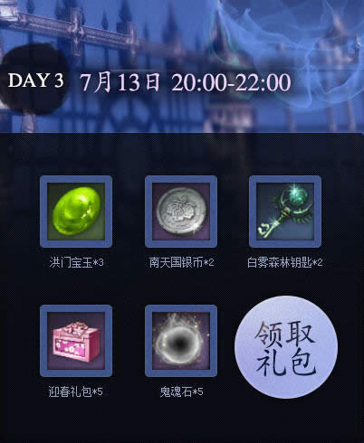 4、每种奖励每个QQ只能领取一次,领取时间即日起至7月13日24点。