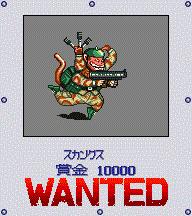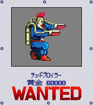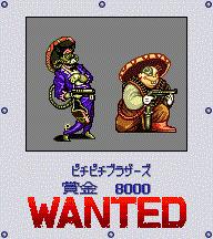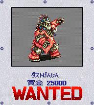 GBA上的MM2改新增的赏金首,名叫“鹰”的印第安摸样的人,隐藏在地图左上角,也就是アズサ北面的サースティー酒场往西北到尽头的那个森林,必须下车,在森林中有很高几率遇到。该敌很强,由于是白兵战,难度较大,最初到サースティー酒场的等级不可能打赢,等游戏后期再来挑战吧。 通缉令的位置:サースティー酒场右上角的房间墙壁上有个像照片一样的图,那就是通缉令。 |