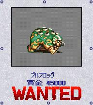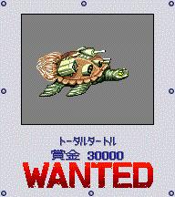 装甲海龟(Total Turtle?),在海的东南部,水洞入口处附近比较容易遇到,遭遇率不低。此怪防御力极高,最初遇到可能打不赢,先逃跑等有了强力装备再来打。 TTフリーザー的掉落几率似乎是众赏金首中最高的了,这点比较厚道。 |