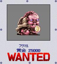 拿着个大手电筒的外星人模样的家伙,名字叫“福丸”? 由于可以乘战车作战,难度不高,主要是位置比较隐蔽。在モロ·ポコ镇北面的河对岸往西走一点会看到一个小屋子,进去以后是个研究所,B1有很多猪。研究所的2F上方有个照片摸样的东西贴在墙上,那就是通缉令。 从研究所那格笔直往右走几步有一格被湖和山三面包围,外星人就在那格出现,并且不是随机遭遇,只要走到那格就会100%遇到它。 |