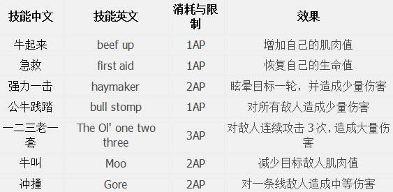 奶牛拳击手是以近战(Melee attack)为主要攻击的职业。主要属性为力量(Muscle)。