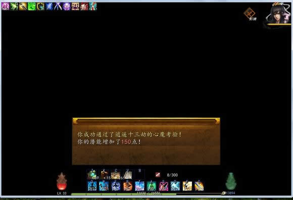 然后过关。存个档,去找无崖子,不用脱装备,系统会自动判断你的裸4维有没有超。