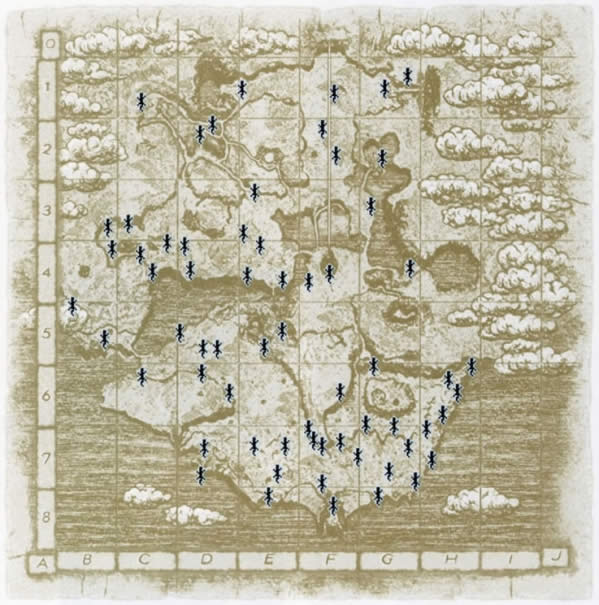由于游戏自带地图过于灰暗、难以看清,而网上的英文重绘地图的轮廓及位置不太准确、且没有白尾蜥蜴的位置,因此自己重绘了一张相对准确而全面一些的。