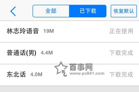3,如果点击“取消”图标,则关闭此弹出层。回到导航语音的已下载页面;如下图所示: