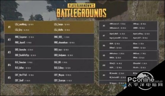 本局比赛决赛圈刷新在R城东北部,场上八支队伍,二十个生存。大部分队伍位于河北侧野外,LSJ满编卡住Asgard将其灭队。安全区再度刷新后,场上五支队伍,十一个生存,LSJ沿蓝圈边清人,将DLG灭掉。最后时刻,场上三支队伍,LSJ满编,RNG三人,GKD一人,LSJ三人将GKD独狼扔雷炸掉,最后4V3,瞬间将其团灭,成功吃鸡。