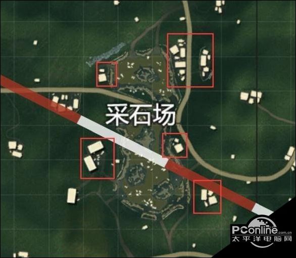 首先大家应该发现了采石场附近是没有楼的,大家在完成这个任务的时候去附近的村子的楼顶也可以完成,如下图所示,红色框内的标注区域都可以完成任务。