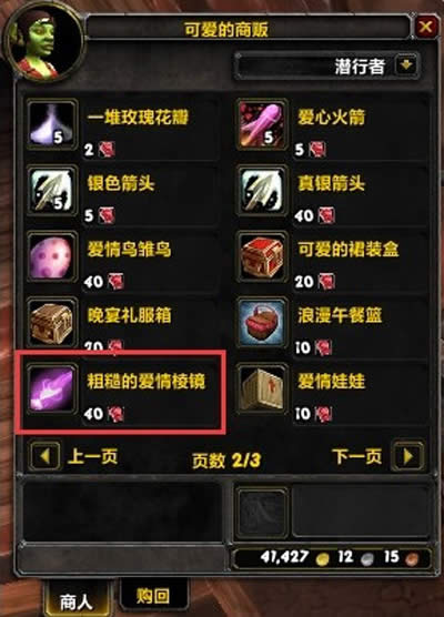 在主城内的可爱的商贩处会贩卖[粗糙的爱情棱镜]售价为40个爱情信物。