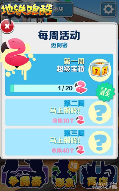 《地铁跑酷》迈阿密版除了向玩家展现迈阿密的独特美景之外,还开启新一轮的任务挑战,每周都会开启不同的任务挑战,只需在每天的游戏过程中收集都道具粉色的“火烈鸟”达到规定的数量就可以自动获取相应的奖励。玩家可以在尽情的挑战自我极限的同时收获更多的快乐,并且还有超值大礼包、宝箱活动来相助,奖励丰厚不容错过。