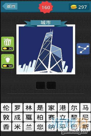 疯狂猜图2个字蓝色背景斜着的两个大楼猜