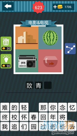 疯狂猜图电影电视,画面分成四个格子,上面各放着不同的物品,分别是大楼,西瓜,收音机,鱼缸。电影的名字是三个字的。答案是什么?