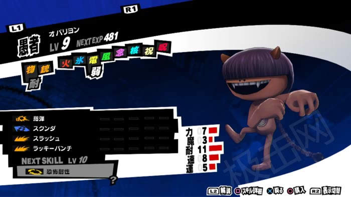 | 1 | アルセーヌ | エイハ | スラッシュ(2) スクンダ(4) 夢見針(5) 逆境の覚悟(7) | - | - | - | 弱 | - | - | - | - | 弱 | 耐 |