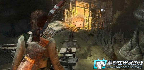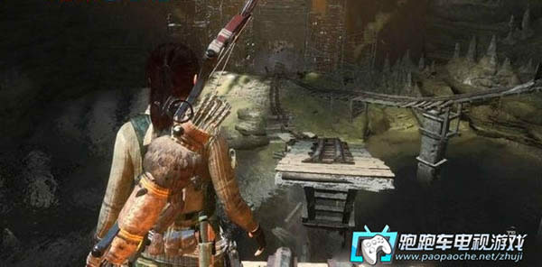 如图所示,这个场景有两条轨道。谜题的目标是释放两条轨道上面的两辆矿车,用来撞开藏宝室的两道木栅门。