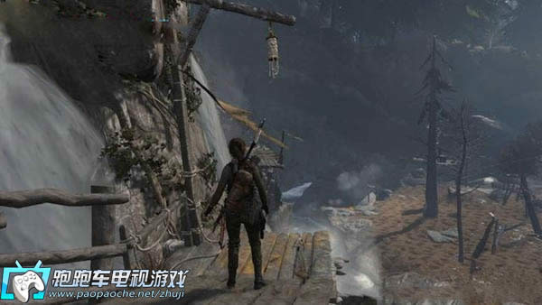 这个古墓溪流边的栈桥前往,用绳索摆荡到对面,撬开一道铁门进入洞穴内部。